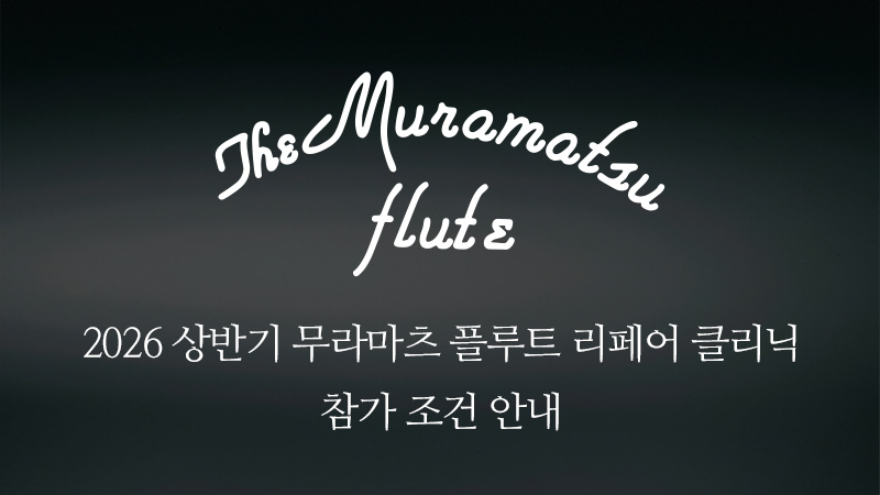 더 보기2026 상반기 무라마츠 플루트 리페어 클리닉 2026년도 상반기 무라마츠 플루트 클리닉을 개최합니다. (주)코스모스악기에서는 변함없는 고객님들의 성원에 보답하고...