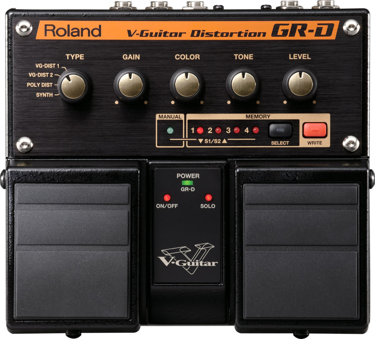 GR-D는 롤랜드 고급 프로세서이면서 조작성은 기존의 이펙트 페달과 마찬가지로 매우 간단합니다. GAIN, COLOR, TONE, LEVEL 4개의 노브에 의한 직감적인 톤 워크를 실현하고 있습니다. 예를 들어, VG-DIST 1에서는 GAIN 노브 디스토션의 정도 컨트롤 플러스 디스토션 상황에 따라 소리의 캐릭터도 변화시킬 수 있습니다. 또한 솔로 플레이 방향의 사운드로 변화하는 SOLO 기능이나 좋아하는 사운드 세팅을 기억하기 편리한 메모리 기능도 탑재. 라이브 스테이지에서의 기타 퍼포먼스를 강력하게 지원합니다.