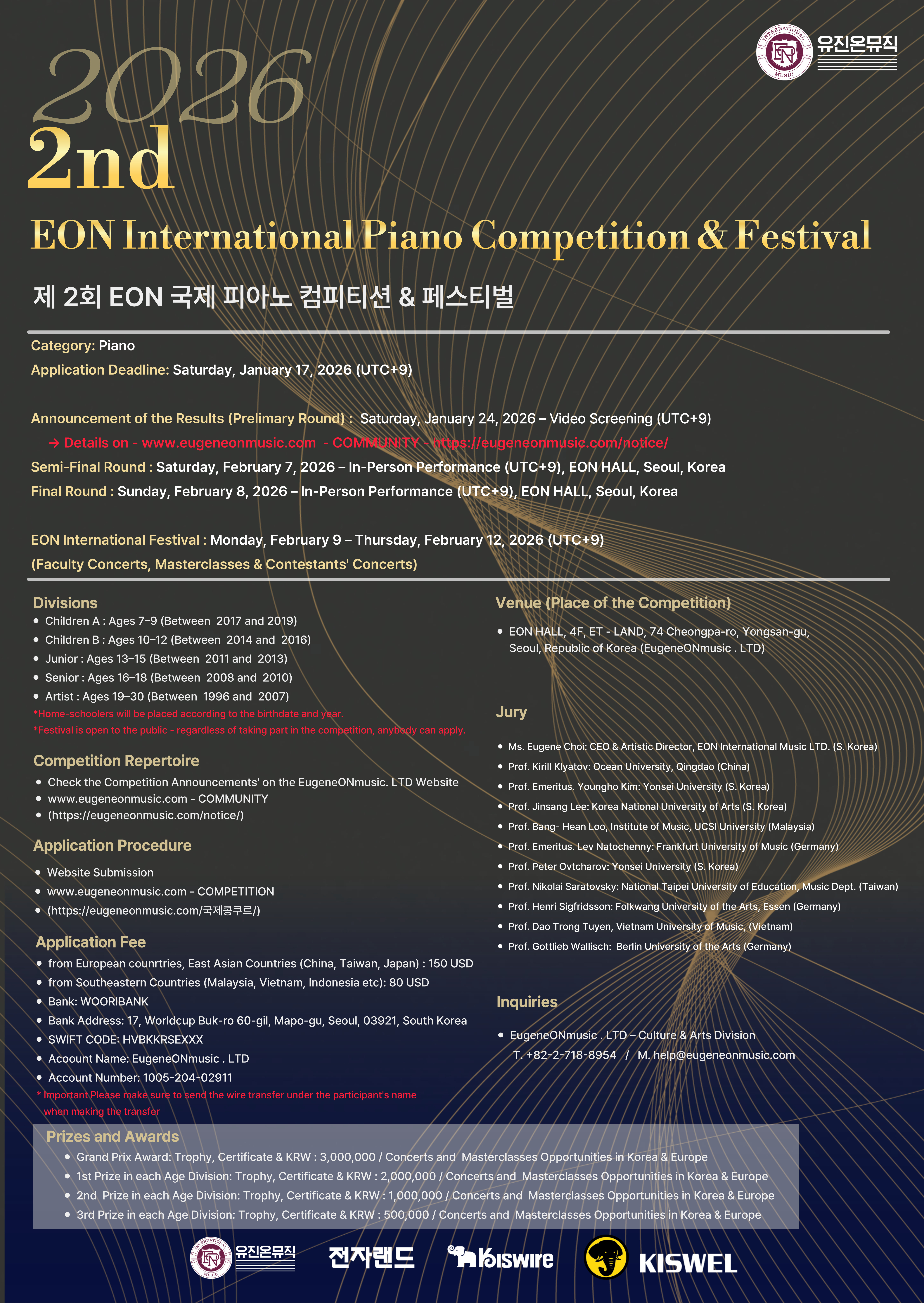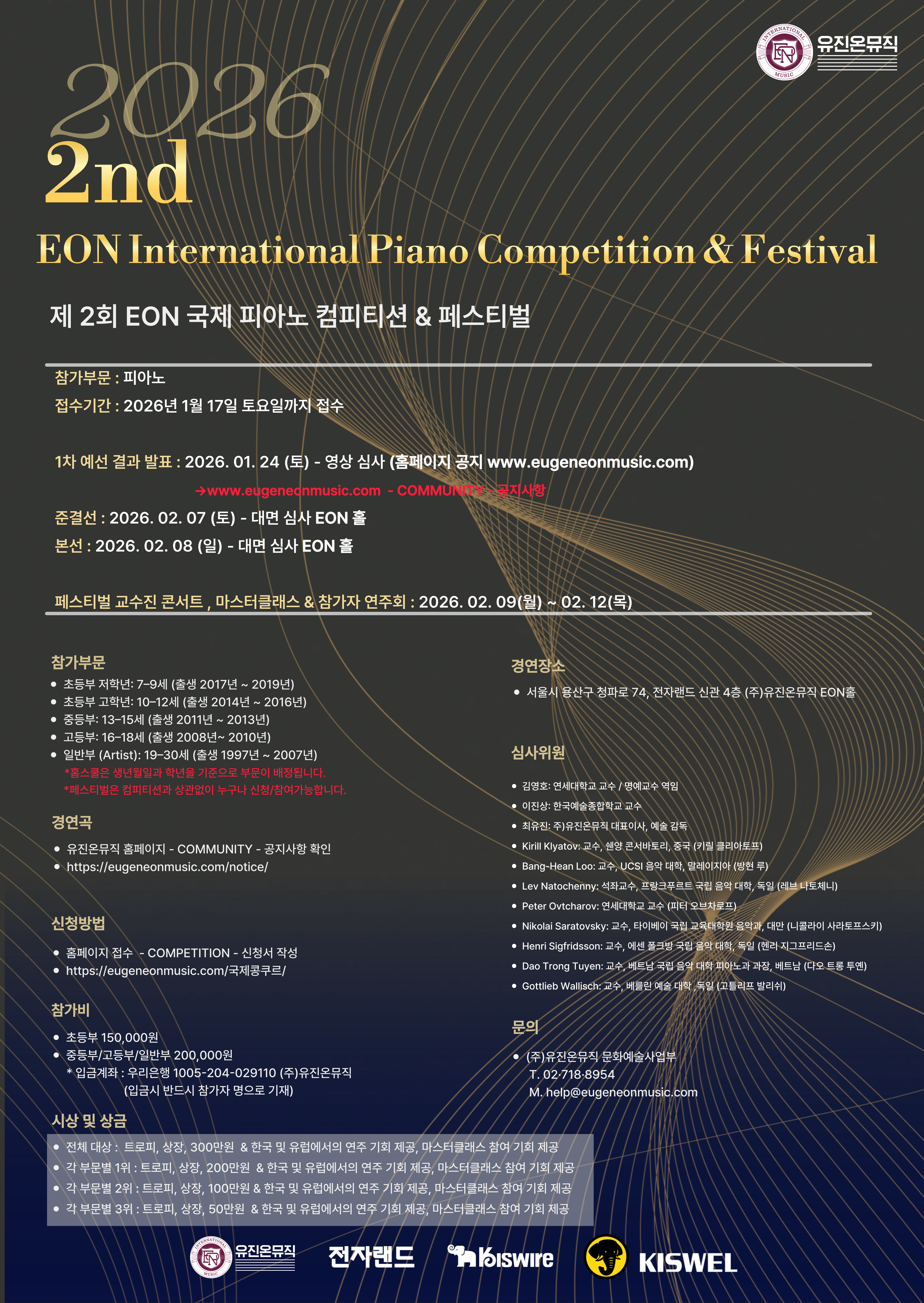 1차 예선 결과 발표 : 2026.01.24(토) - 영상 심사 홈페이지 공지 https://eugeneonmusic.com/notice/
